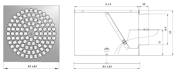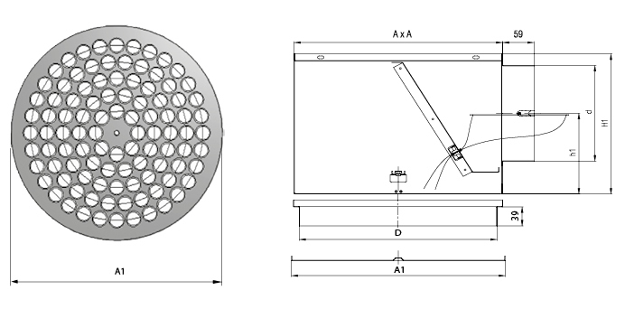 Difusores de teto de alta indução, constituídos por multi-injectores de ajuste individual, dispostos em forma quadrangular, e montados num prato quadrado, e equipados com plenum em aço galvanizado.