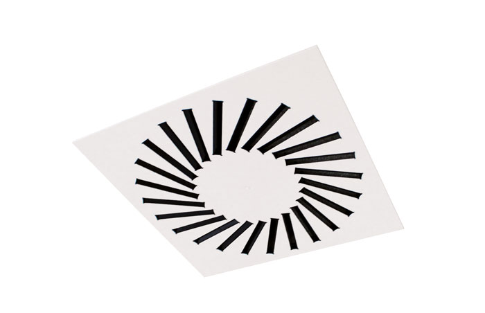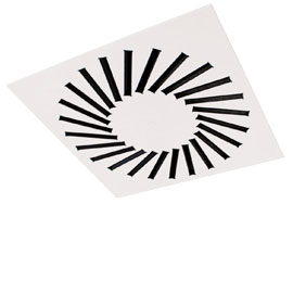 Difusores rotacionais quadrados fabricados em chapa de aço lacada.
