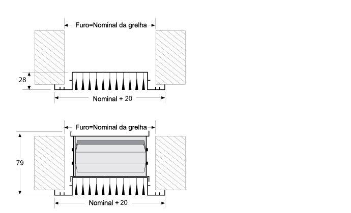 GLP Grelha linear de parede e teto com aro. Lâminas fixas a 0° ou 15°. GLP-0 Modelo com registo. |