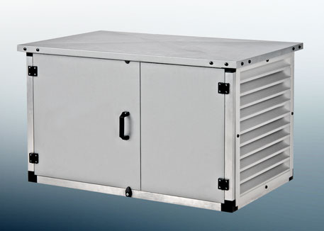 A estrutura da caixa é composta por painéis em aço plastificado, perfis de alumínio extrudido e cantos em polipropileno.